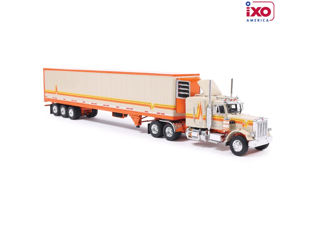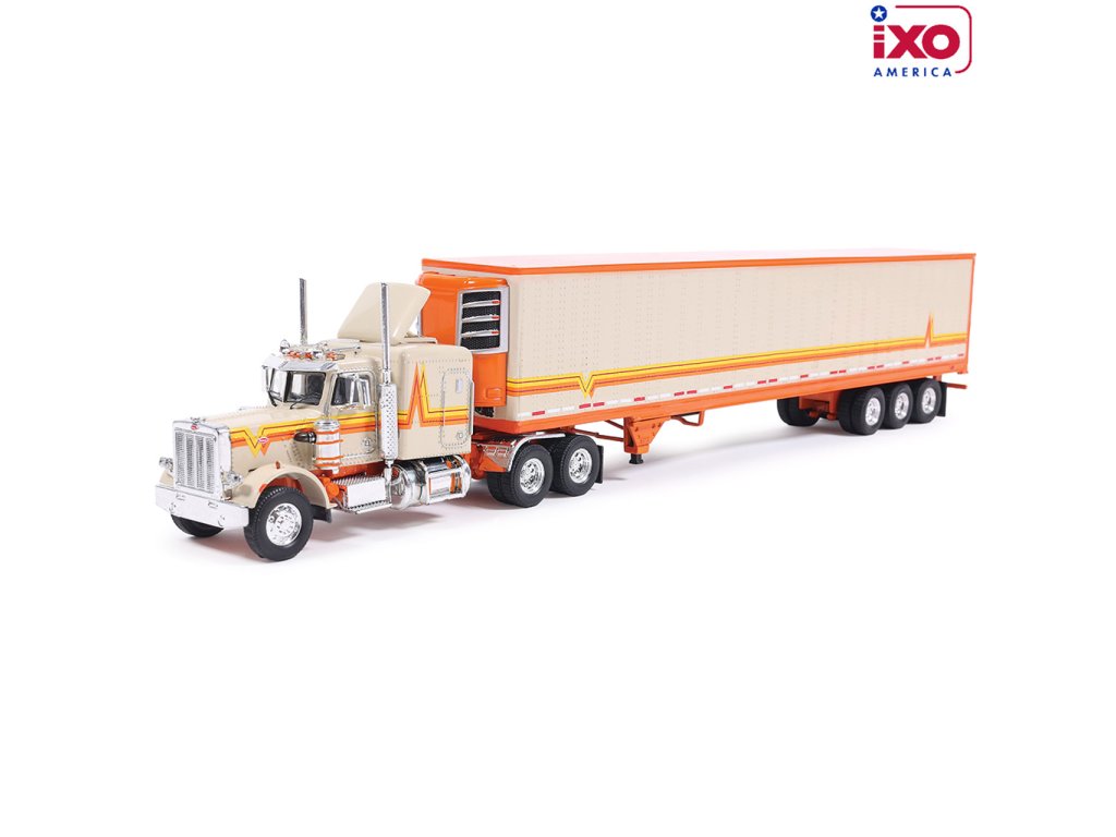 Peterbilt 359 (1973) s návěsem - Oranžová/Krémová 1:64 IXO
