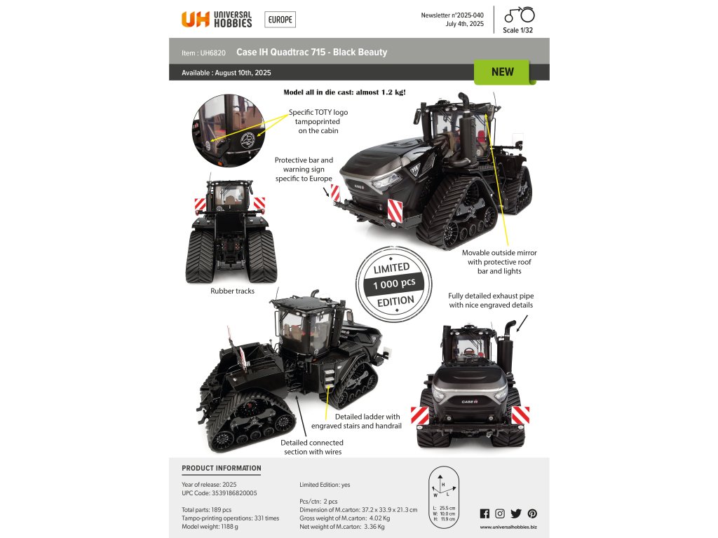 Traktor Case IH Quadtrac 715 - Black Beauty 1:32 Universal Hobbies